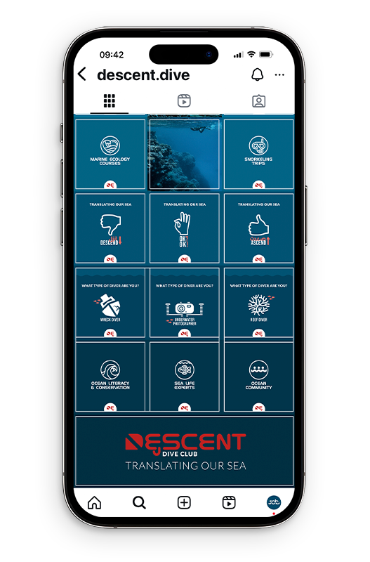 We helped establish Descent Pro’s brand identity and improve communication. First, we launched their Instagram channel to grow their online presence. We created engaging and educational content to showcase their mission, values, and expertise. Through a mix of visuals, infographics, and informative posts, we highlighted their passion for diving, marine biology, and conservation.